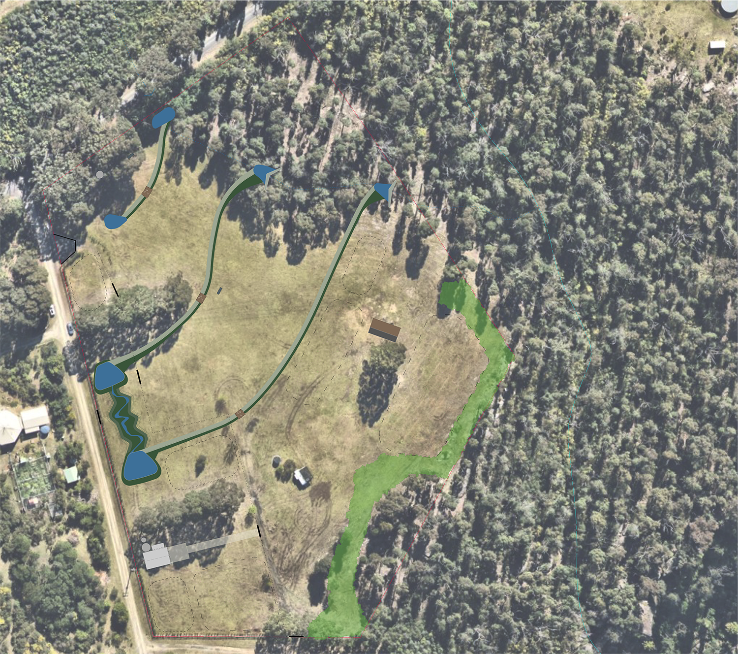 Martin developed a plan for a rural property in Kangaroo Valley NSW incorporating principles of Natural Sequence Farming. This landscape management approach developed by Peter Andrews OAM and Tarwyn Park Training sets out to engage landscape function to address erosion, build soil carbon and fertility and improve the landscapes ability to buffer drought, flooding and bushfire.