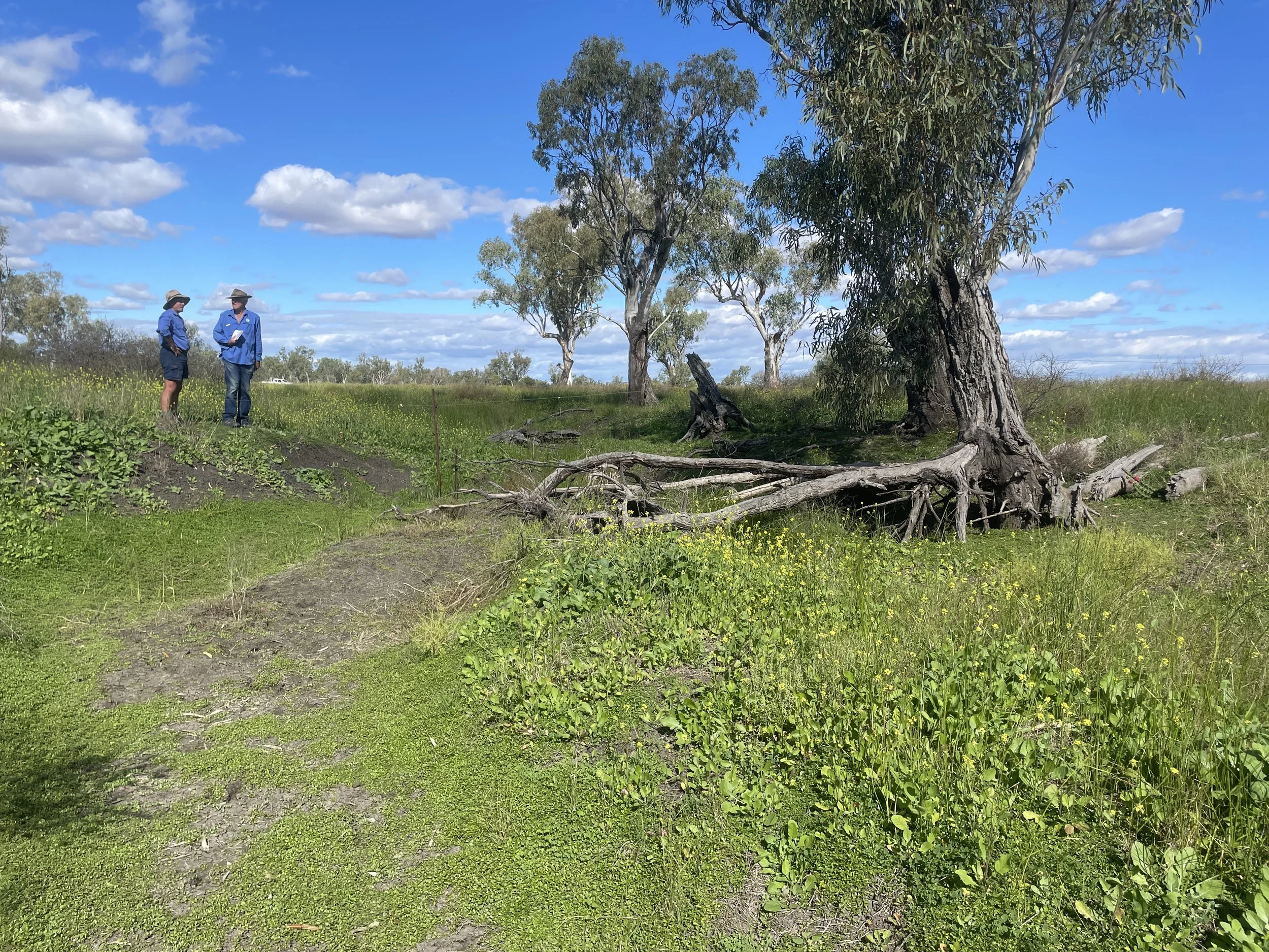 Martin travelled to the NSW Queensland border as part of the Tarwyn Park Training team led by Stuart Andrews. The trip was an opportunity to further his understanding of Natural Sequence Farming land management - an approach developed by Peter Andrews OAM. The trip was challenging in that the flood plain landscape was immense in scale and had very little topographic variation - it appeared very flat making understanding and recognising water patterns difficult to the untrained eye. The team investigated major erosion and topsoil migration as a result of farming and landscape management practices and developed strategies for mitigating these issues.